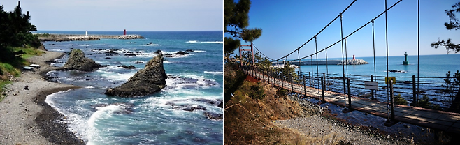 경주 여행코스하면 역사적 관광지를 떠올리곤 하는데요. 파도 소리가 울려 퍼지는 해안 산책길과 주상절리 파도 소리길을 걸어보는 걸 추천드립니다. 특히 코스 중간 중간 전망대와 데크, 포토존, 안내판 등이 잘 갖춰져 있어 멀리서 온 초행자라도 어렵지 않게 완주할 수 있다고 하는데요. 출렁다리부터 다양한 모양의 주상절리를 만나볼 수 있습니다.