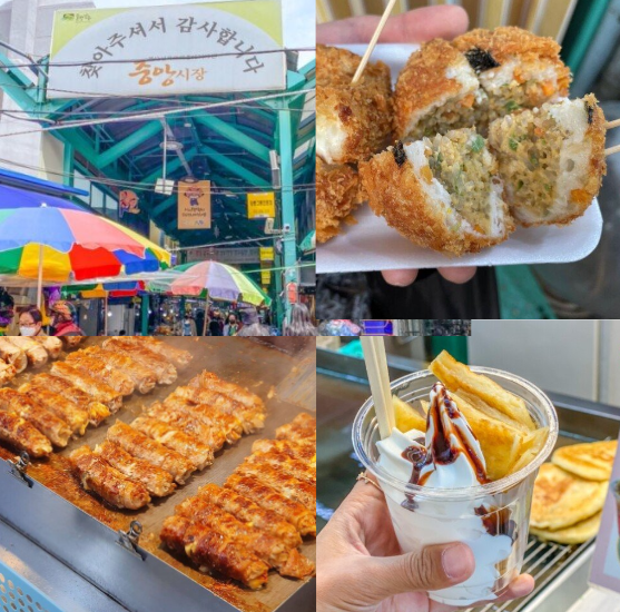 마지막으로 강릉하면 빼놓을 수 없는 중앙시장을 둘러보는 것을 추천드리는데요. 전통시장임에도 불구하고 깨끗하고 쾌적한 시설을 자랑하며, 넘쳐나는 먹거리가 여행객들을 사로잡는 곳입니다. 수제 어묵 고로케, 김치말이 삼겹살, 호떡 아이스크림 등 강릉 중앙시장에서만 즐길 수 잇는 메뉴가 넘쳐난다고 하니 꼭 들러보시길 추천드립니다.