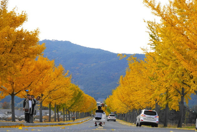 통일전은 경주의 대표적인 가을명소 중 한 곳인데요. 통일전 앞 직선으로 뻗은 은행나무길은 대한민국의 100대 아름다운 길로 경주에서 가장 유명한 은행나무 명소입니다. 높고 푸른 가을 하늘과 맞닿아있는 이 길은 경주 시내에서 불국사로 가는 길목에 위치해 있습니다.