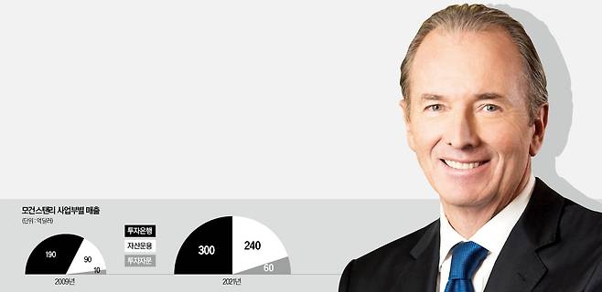 금융위기를 겪은 고먼 CEO에게 무엇보다 중요한 것은 안정성이었다. 모건스탠리로 옮긴 뒤 자산운용업을 공격적으로 확장했다. 자산운용사는 고객이 가입한 펀드 수익률이 곤두박질쳐도 안정적인 수수료 수익을 올릴 수 있다. 시장이 요동쳐도 고정수익을 챙기는 셈이다.