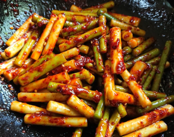 마늘쫑볶음이 특별한 이유는 재료가 아니라 순서와 불 조절이다. 과하게 볶지 않고, 양념을 졸이듯 입히고, 고춧가루는 불을 끄고 넣는다. 마지막 들기름으로 향을 덮는다.