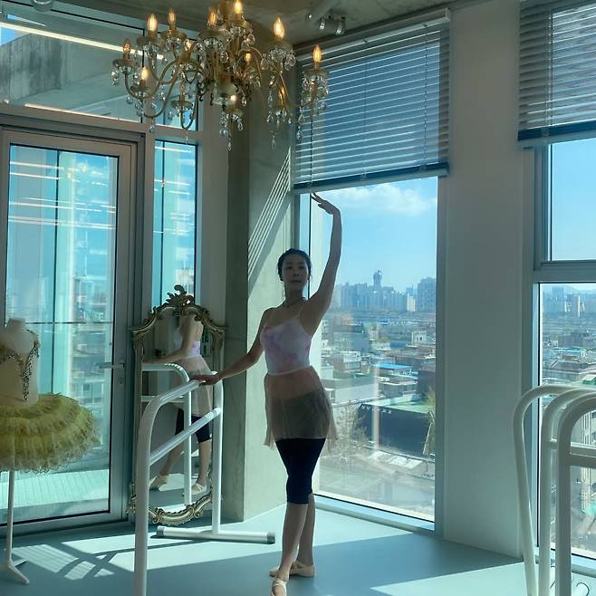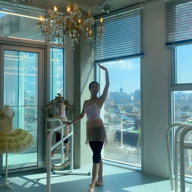 공개된 사진 속 그녀는 도시 전경이 내려다보이는 탁 트인 창가에서 발레 포즈를 취한 채, 조각 같은 실루엣을 드러냈다.