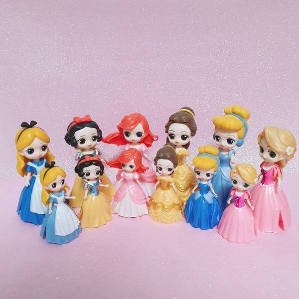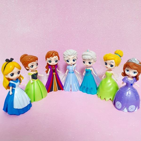이건 겹치지 않은 다른 디즈니 공주 인형들이에요. 케이크게 올려놓는 것만으로도 아이가 정말 좋아한답니다! 인형놀이할 때도 잘 사용해서 생일 선물로도 추천드려요!