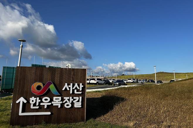 넓게 펼쳐진 초지 위로 한우들이 점처럼 찍혀 있고, 구릉을 따라 데크길이 부드럽게 이어지는 풍경이 마치 유럽 목장을 옮겨놓은 듯하죠. 이곳이 바로 서산 한우목장 웰빙산책로입니다. 1969년부터 국가에서 운영해 온 방목형 한우 목장 일부를 개방해 만든 산책로라, 관광지를 따로 꾸민 인위적인 느낌보다 목장의 일상과 자연 풍경을 그대로 담아낸 것이 매력입니다.