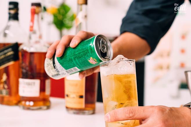 하이볼을 위한 믹서를 고를 때 또 다른 팁은 탄산이 최대한 강한 걸 고르는 것이다. 개인적으로는 싱하를 가장 선호한다. 탄산 입자가 굵어 탄산감이 강력하며, 시간이 지나도 탄산이 잘 유지되는 편이라 천천히 여유를 갖고 즐기기에도 좋다.