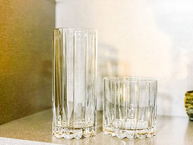 [왼쪽이 하이볼 글라스, 오른쪽이 올드패션드 글라스]