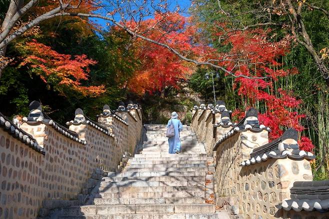 등산이 부담스러워도 90번 버스를 이용해(범어사 하차) 쉽게 접근하여 사찰 주변의 단풍을 여유롭게 산책할 수 있다.