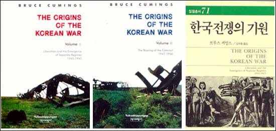 | ▲ <한국전쟁의 기원> 영문판 표지와 일월서각 번역본 표지. <한국전쟁의 기원> 영문판 표지와 일월서각 번역본 표지. |