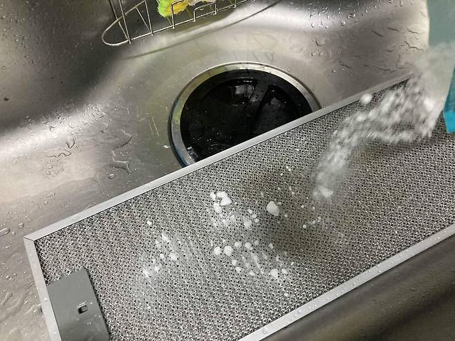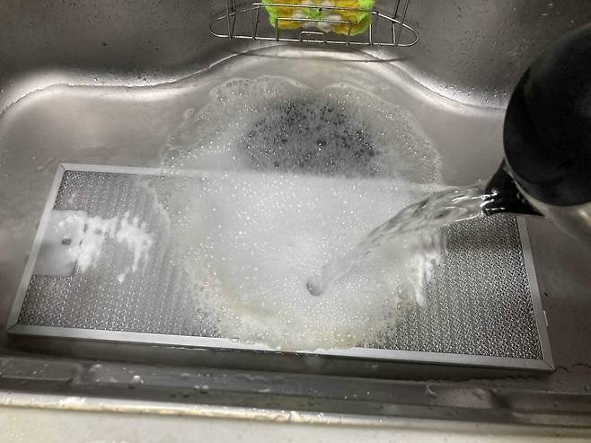 후드를 싱크대에 담가주세요!