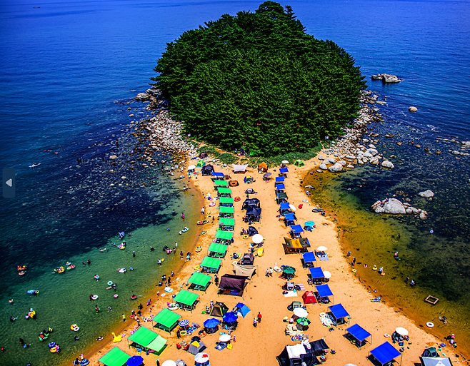 마차진해변에서 가장 눈에 띄는 풍경은 바로 해변과 연결된 작은 섬 ‘무송대’입니다. 울창한 소나무가 자라고 있어 붙여진 이름으로, 바다 위에 떠 있는 듯한 섬 풍경이 마치 그림처럼 펼쳐집니다. 현재는 보존을 위해 출입이 제한되어 있지만, 이 섬을 배경으로 떠오르는 일출은 해변을 찾는 사람들에게 특별한 인상을 남깁니다.