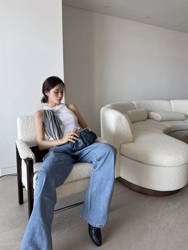 여기에 시크한 블랙 로퍼와 미니멀한 가방, 심플한 반지까지 더해져 꾸안꾸룩의 정석을 선보였습니다. 특유의 여유로운 포즈와 군더더기 없는 깔끔한 스타일링이 어우러지며 인테리어마저 런웨이로 만드는 ‘심플 끝판왕’ 면모를 자랑했다.