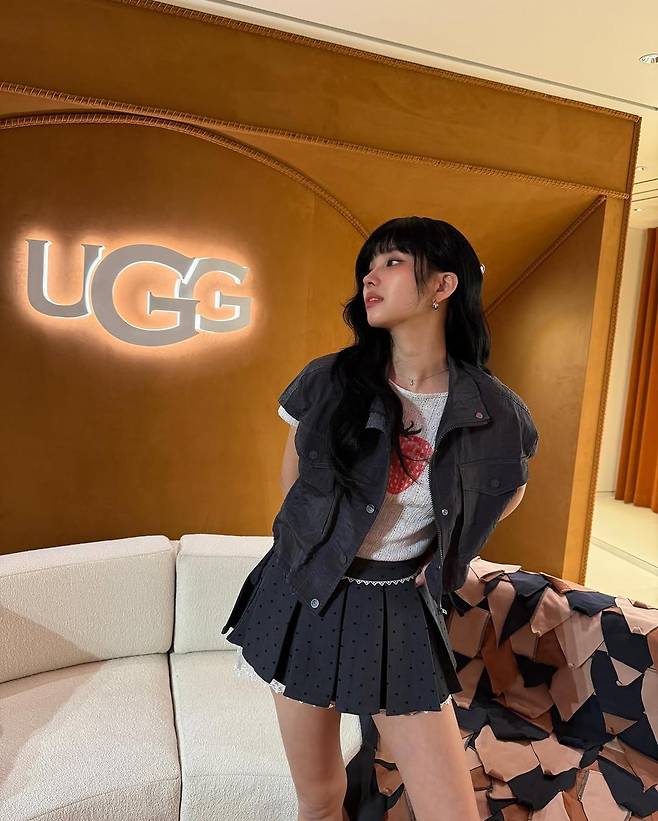 (여자)아이들 전소연은 늘 자신의 스타일에 확신이 있다. 과감하면서도 자유롭고, 틀에 갇히지 않은 감각. 이번에도 역시였다. 브랜드 UGG의 로고를 배경으로 포즈를 취한 그녀는, 작지만 또렷한 존재감을 뽐냈다.