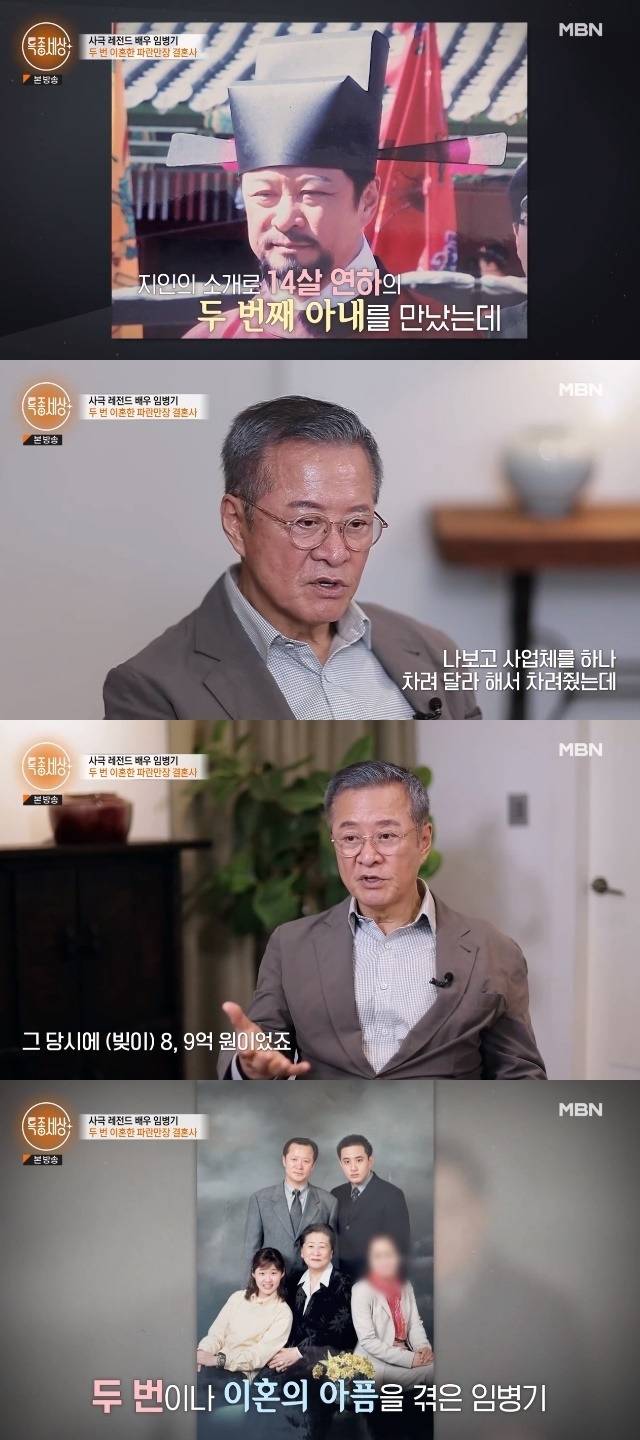 이혼 후 싱글 대디로 살던 임병기는 14살 나이 차이가 나는 친구 조카인 아내와 3년 열애 끝에 결혼했지만 “나보고 사업체를 하나 차려 달라고 해서 차려줬는데, 사업이 안 되고 저질러 놓은 일이 많았다. 일식집, 스크린 골프를 하면서 저한테 금전적인 피해를 많이 입혔다. 그 당시에 (빚이) 8, 9억이었다.”라고 전했습니다.