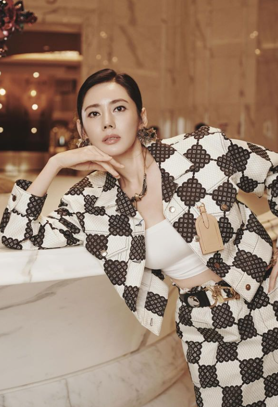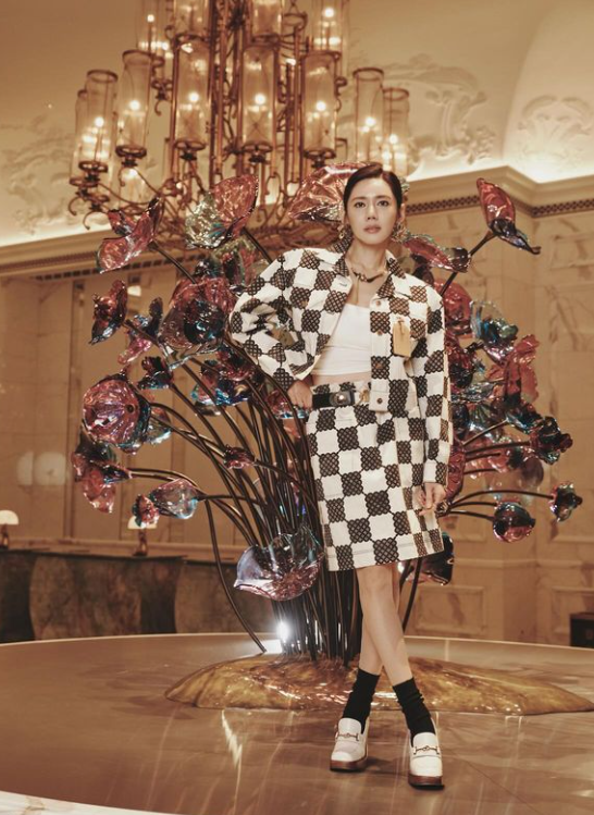 추자현은 독특한 패턴의 투피스를 입고 화려하고 시크한 패션으로 시선을 사로잡았다.