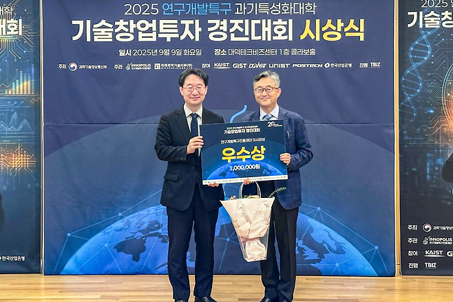 광주과학기술원(GIST, 총장 임기철)은 9일(화) 대덕테크비즈센터에서 열린 ‘2025 연구개발특구 과기특성화대학 기술창업투자 경진대회’ 시상식에서, 신소재공학과 이광희 교수가 창업한 교원창업기업 ㈜리셀이 우수상을 수상했다고 밝혔다.