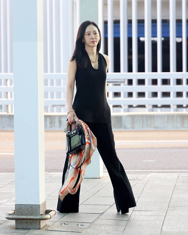 박주미는 단아한 미소와 함께 특유의 고급스러운 아우라로 공항에 등장해 시선을 끌었습니다.