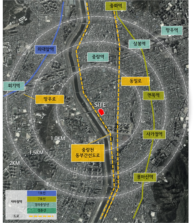 해당 아파트는 15분 이내 거리에 경의중앙선 중랑역, 7호선 면목역과 동부시장·중랑초·전동중·휘봉고 등 다양한 생활 인프라가 형성되어 있으며, 분양세대 중 148가구는 2~3인 이상 가구에 적합한 51·59형 타입으로 구성되어 있다.