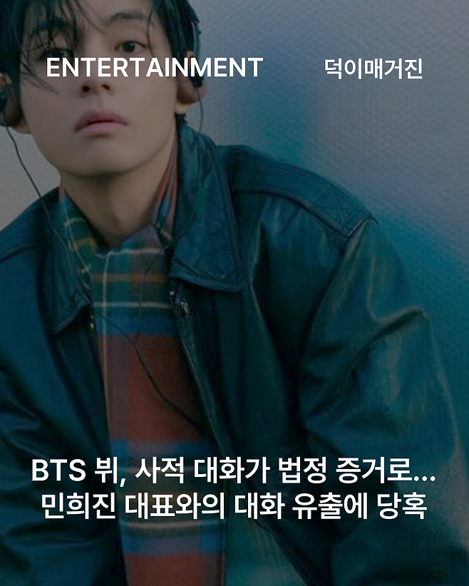 그룹 방탄소년단(BTS) 멤버 뷔가 민희진 전 어도어 대표와 나눈 사적인 메신저 대화가 법정 증거로 채택된 것과 관련해 “매우 당황스럽다”는 입장을 밝혔습니다.