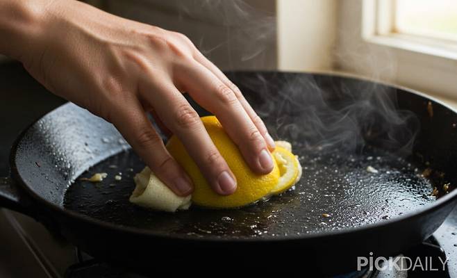 레몬을 활용하면 후라이팬에 배인 냄새를 손쉽게 없앨 수 있다. 생선을 굽고 난 후라이팬이 아직 따뜻할 때 레몬 조각으로 팬을 문질러 준다. 레몬 속 구연산이 냄새 원인 물질을 중화시키고 상큼한 향이 남아 비린내를 덮어준다. 기름때 역시 잘 닦여 세정 효과도 뛰어나다. 레몬즙을 짜서 물과 섞어 분무기에 넣은 뒤 뿌려 닦아내는 방법도 좋다.