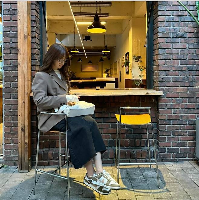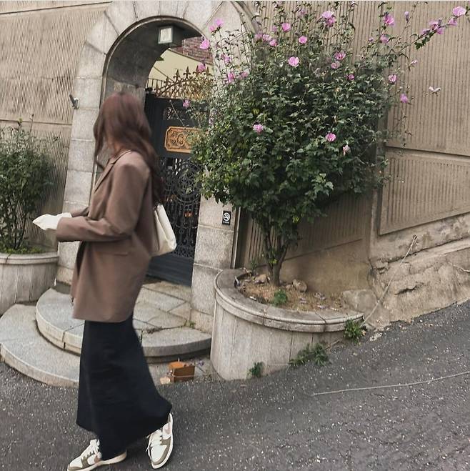 윤은혜는 브라운 컬러의 오버사이즈 재킷과 캐주얼한 블랙 롱 스커트로 편안하면서도 시크한 가을 패션을 선보였습니다.