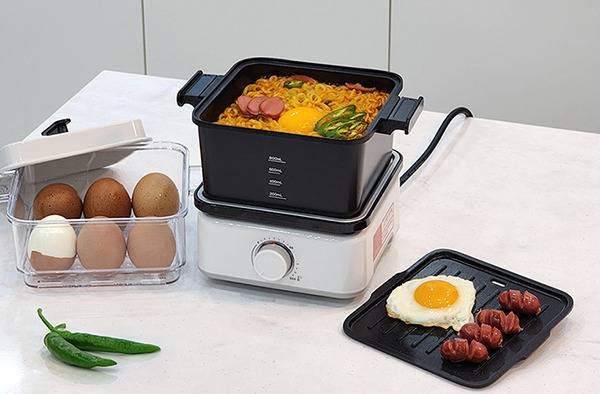 ‘에버튼하우스 스퀘어 3in1 멀티쿠커’는 한 번에 계란 12개까지 삶을 수 있는 대용량 찜기, 라면 2봉을 동시에 끓일 수 있는 만수용량 1리터의 냄비, 데우기용 핫플레이트, 프라이팬처럼 쓸 수 있는 그릴팬까지 하나의 기기에 담긴 멀티쿠커다. 그릴에는 기름받이가 따로 있어서 세척하며 위생적으로 사용할 수 있다. 여행용으로 휴대하며 사용할 수 있는 전용 파우치를 본품과 함께 제공한다. 본 제품의 판매가는 31,000원이다.