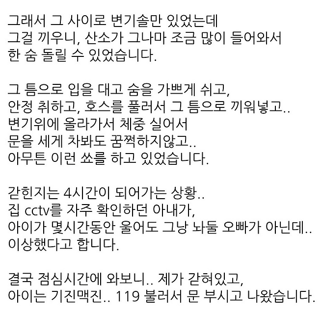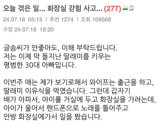 돌지난 딸래미 두고 화장실에 갇힌 아빠