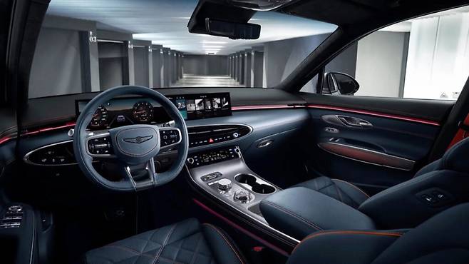 전면부에는 크레스트 그릴을 이중 메쉬 구조로 세련되게 다듬었고, 제네시스 특유의 두 줄 디자인을 반영한 헤드램프에는 MLA 기술이 적용되어 현대 기술과 우아한 디자인이 조화를 이뤘다.