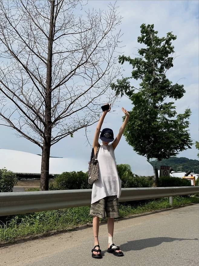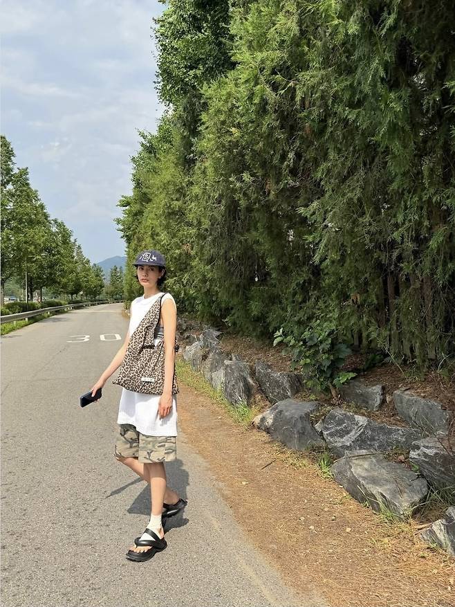 나나는 리얼 스트리트 감성 가득한 여름 아웃도어룩으로 힙한 분위기를 물씬 풍겼습니다.