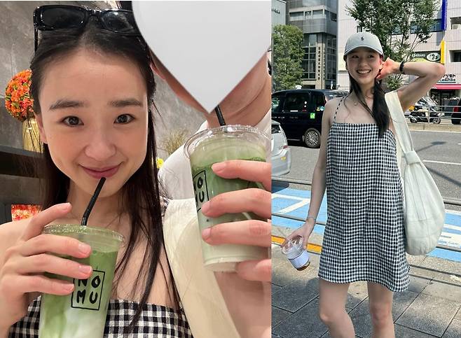 손연재는 깅엄 체크 패턴의 원피스를 착용해 여름의 시크함을 완벽하게 소화하며 여유로운 일상 속 패셔니스타로서의 면모를 과시했습니다.