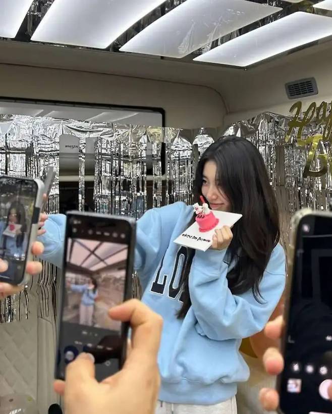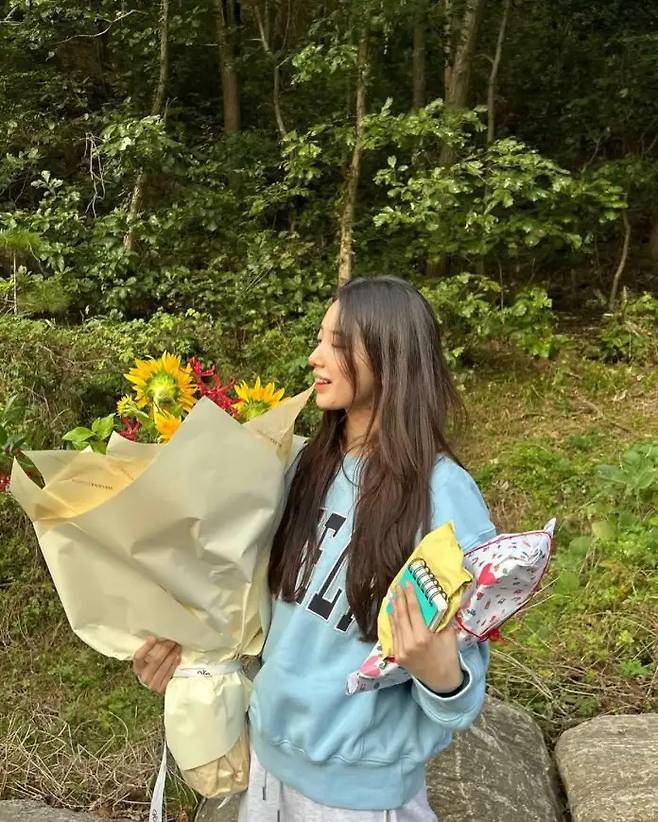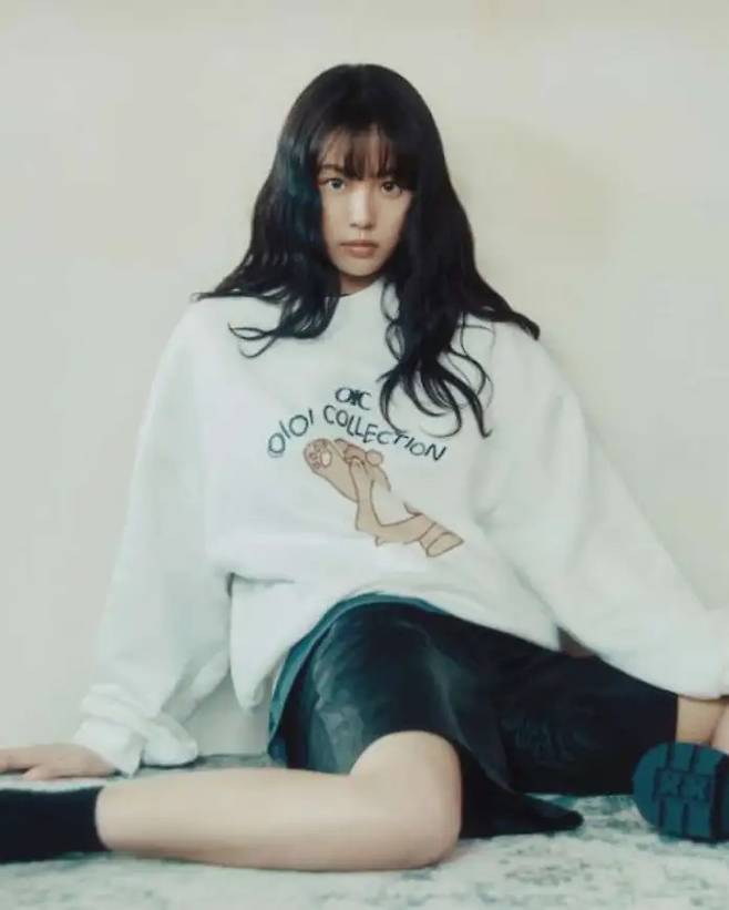 먼저 첫 번째 주인공은 수지다. 그는 하늘색 맨투맨을 넉넉한 핏으로 걸쳐 편안한 느낌을 줬다. 어깨선이 자연스럽게 떨어지고 소매와 밑단 시보리가 부드럽게 잡혀 전체적으로 둥근 형태가 만들어진다.