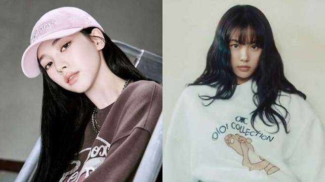 먼저 첫 번째 주인공은 수지다. 그는 하늘색 맨투맨을 넉넉한 핏으로 걸쳐 편안한 느낌을 줬다. 어깨선이 자연스럽게 떨어지고 소매와 밑단 시보리가 부드럽게 잡혀 전체적으로 둥근 형태가 만들어진다.