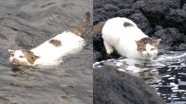 [노트펫] 보통 고양이는 물에 젖는 것을 싫어한다고 알려져 있는데요. 기꺼이 바닷물에 뛰어든 고양이의 모습이 네티즌들의 눈길을 끌었습니다.