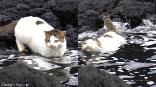 [노트펫] 보통 고양이는 물에 젖는 것을 싫어한다고 알려져 있는데요. 기꺼이 바닷물에 뛰어든 고양이의 모습이 네티즌들의 눈길을 끌었습니다.