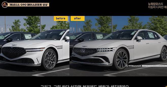 외관은 제네시스 디자인 철학 ‘역동적인 우아함(Athletic Elegance)’을 한층 정제된 방식으로 구현한다. 크레스트 그릴과 두 줄 쿼드램프, 수평형 리어 라이트바 등 상징적인 요소는 유지하면서, 전면부에는 더 얇고 정밀한 쿼드 LED 라이트와 입체감 있는 파라메트릭 쉴드 그릴 패턴이 적용될 가능성이 높다. 측면부는 신규 휠 디자인과 크롬 라인 디테일 개선이 이뤄지고, 후면부는 테일램프 그래픽과 디퓨저·머플러 팁이 고급스럽게 재구성될 것으로 보인다.