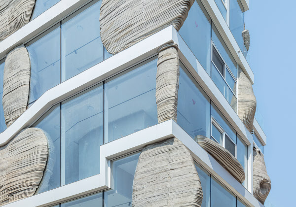 ‘로스톤’은 대지 339.5㎡에 들어섰으며 지하 1층~지상 6층, 연면적 785.12㎡에 높이 약 25m 규모다. 올해 3월 준공한 신축 건물이다. 겉보기에 거대한 바위처럼 보이는 물체는 콘크리트로 제작된 것이다. 각기 다른 생김새를 한 넓적한 콘크리트 바위 기둥 48개가 각 층 천장을 받치고 있는 모양새다. 현재 1~3층은 카페, 4층은 갤러리 등으로 운영하고 있다.