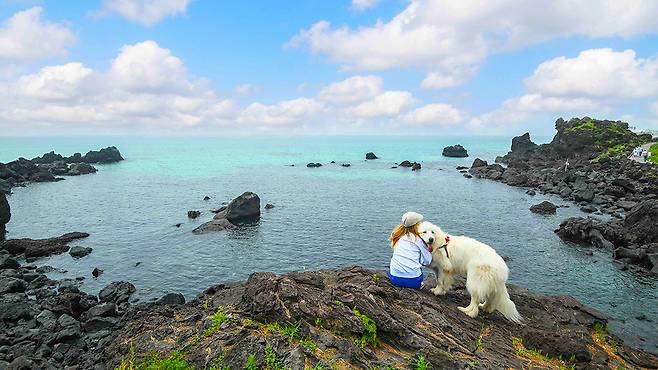 곽지와 금성리를 잇는 한담해안산책로는 제주에서도 잘 알려진 힐링 명소다. 검은 용암 바위 사이로 부서지는 파도, 그 옆을 따라 펼쳐진 잘 닦인 산책로는 걷는 이에게 특별한 감정을 전한다.