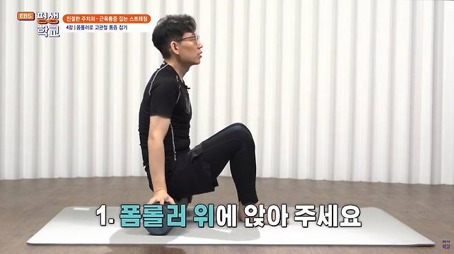 1. 폼롤러를 꼬리뼈 아래에 두고 편안히 눕습니다