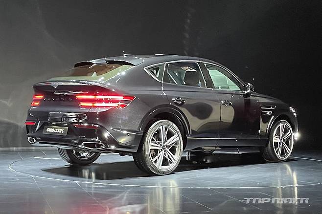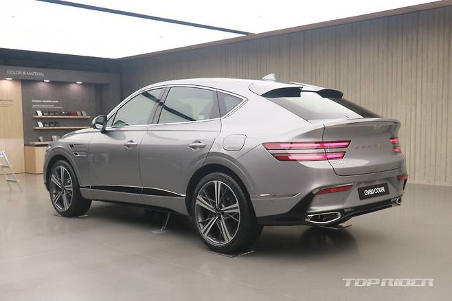 차체를 가로지르는 아치형 라인인 파라볼릭 라인, 날렵한 형태의 윈도우라인(DLO), 쿠페 전용 20인치 및 22인치 휠이 탑재됐다. 후면부 LED 면 발광 테일램프는 하단 램프보다 상단 램프가 길어 일반 모델과 차별화됐다. 전체적인 후면부 모습은 제네시스 G80가 연상된다.