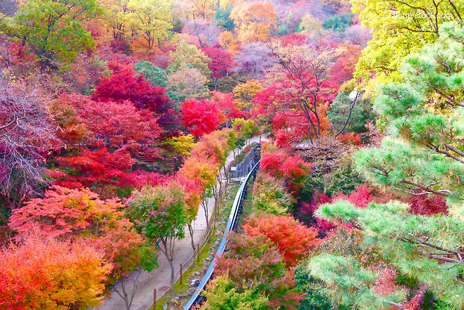 400여 종에 달하는 다양한 단풍나무가 손짓하는 곳. 발길 닿는 곳마다 선명한 가을색이 무척 아름답다. 화담숲의 자랑인 모노레일을 타면 색다른 시선으로 가을을 마주할 수 있다.
