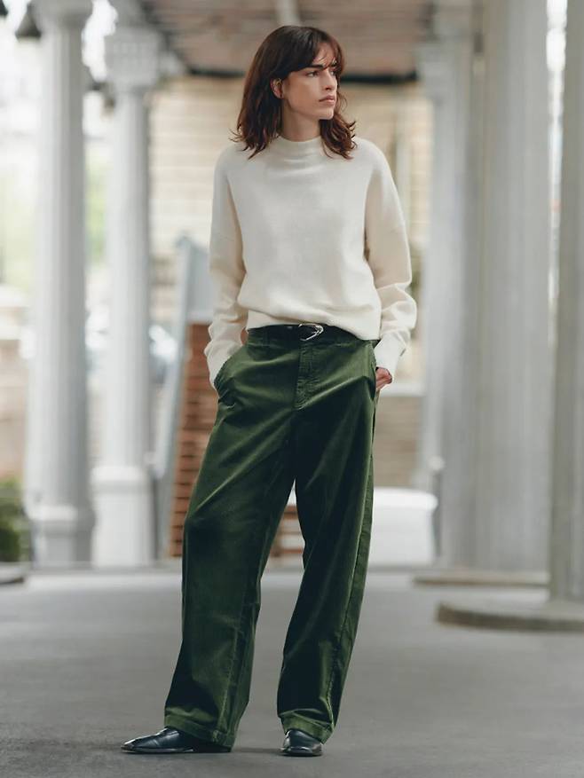 유니클로 커브 핏처럼 퐁실한 라인이 부담스럽다면, 토마스모어가 좋은 대안이다. 남녀 누구나 편하게 입을 수 있는 빈티지 웨어 브랜드로, 이들이 선보이는 코듀로이 팬츠는 허벅지부터 밑단까지 곧게 떨어지는 세미 와이드 핏이 특징이다. 담백한 실루엣으로 어떤 아우터와도 자연스럽게 어울린다.