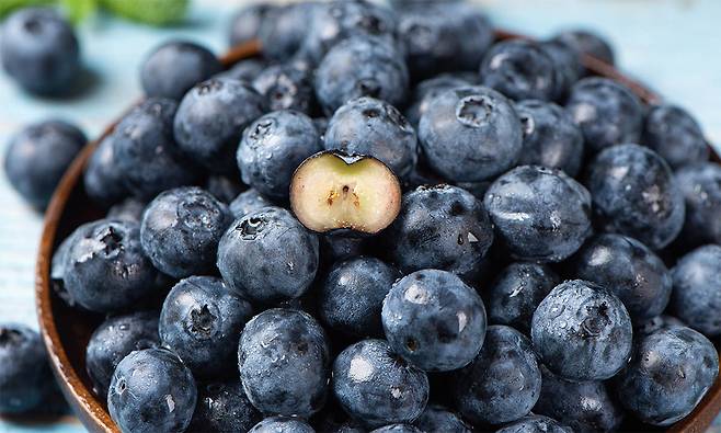 블루베리는 눈에 좋은 식품으로 알려졌지만, 피부 탄력을 유지하는 데도 효과가 있다. 핵심은 보라색을 내는 색소 성분인 안토시아닌이다. 안토시아닌은 노화의 원인이 되는 활성산소를 제거해 피부 세포가 산화되고 파괴되는 것을 억제한다. 이는 엘라스틴과 콜라겐이 분해되는 것을 막아 피부가 처지는 현상을 지연시킨다.