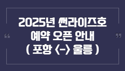 울릉도 배편은 미리 예약하는 것이 필수입니다. 특히 연휴나 여름 성수기에는 매진이 빠르게 될 수 있으니 서둘러 주세요!