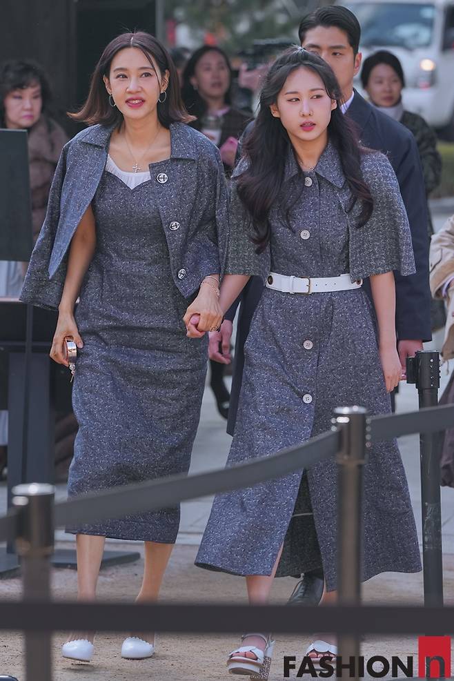 이날 오현경은 그레이 원피스과 재킷 슈트를, 딸 채령 양은 그레이 케이프 원피스 슈트로 패션까지 꼭 닮은 슈트 시밀러룩으로 눈길을 끌었다.