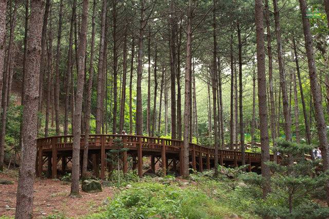 산음자연휴양림은 자연 지형을 훼손하지 않는 범위에서 무장애 탐방이 가능하도록 데크로드와 경사로가 설치되어 있습니다.