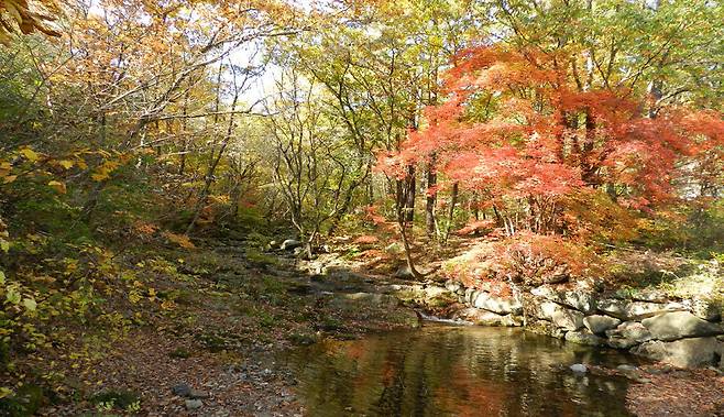 산 능선에서 흘러내린 찬 바람, 잎을 털어낸 나무 사이로 스며드는 햇빛, 계곡의 낮은 물소리까지. 자연 그대로의 시간을 온몸으로 마주할 수 있는 공간이죠.