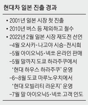 현대차의 이번 전기택시 공급이 주목되는 이유는 외국산 자동차의 불모지로 여겨졌던 일본 시장에서 성공 가능성을 가늠할 수 있는 시금석이 될 수 있기 때문이다. 현대차는 올해 2월 12년 만에 일본 승용차 시장에 재진출한다고 밝혔다. 이어 도쿄 하라주쿠에 체험형 전시장인 '현대 하우스 하라주쿠'를 5월 말까지 운영함으로써 고객에게 아이오닉5와 자사 수소전기차 '넥쏘'의 전시·시승·상담 서비스를 제공했다. 일단 현대차는 5월부터 아이오닉5와 넥쏘의 온라인 판매를 시작했으며 해당 차량 고객 인도는 이달 말 시작될 예정이다. 차량 주문부터 대금 결제, 보험 가입, 자동차 등록 등 구매 전반에 관한 모든 과정을 온라인으로만 실시하는 점도 주목된다.