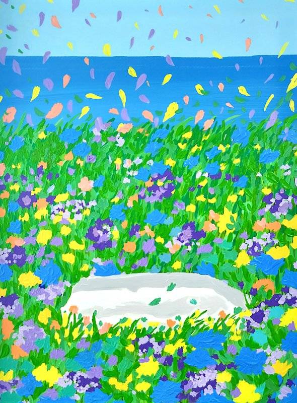 프리다옥 작가님이 그리신 환상적인 꽃밭 풍경입니다. 작가님은 주로 정원 풍경을 그리시고, 이 정원을 보며 쌓인 감정과 긴장을 내려놓길 바라십니다.