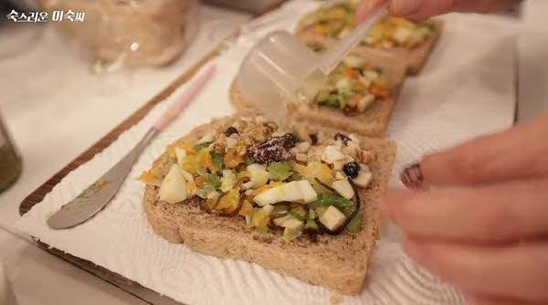지난 22일 유튜브 채널 ‘이미숙_숙스러운 미숙씨’에는 ‘이미숙 요리는 예.뻤.다. (feat.전지현 레시피)’라는 제목의 영상이 올라왔다. 영상에서 이미숙은 “간편하게 영양식 위주로 요리해 먹는다”며 매일 아침 먹는 건강식 레시피를 소개했다. 이미숙은 당근, 셀러리, 양파, 닭가슴살, 달걀흰자, 은행을 믹서기에 간 뒤 볶았다. 이후 식빵 위에 견과류와 함께 올려 먹었다. 이미숙은 “소금도 하나도 안 넣어서 완전 건강식이다”라며 “냉장고에 넣어 놓고 일주일 내내 아침마다 먹는다”고 말했다.