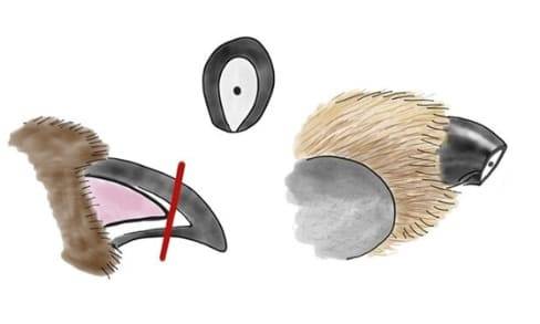 강아지 발톱깎이 안으로 발톱이 들어가도록 한 뒤, 혈관과 3~4mm 정도 여유를 두고 직각이 아닌 비스듬한 45도로 잘라주세요.