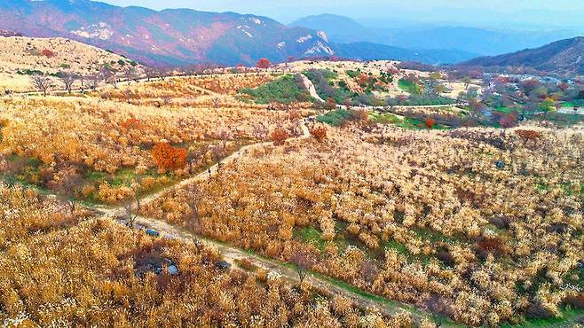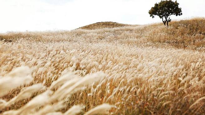 이곳에서는 붉은 물결 대신 은빛 억새가 산 능선을 따라 끝없이 출렁이며, 가을의 또 다른 얼굴을 보여줍니다.